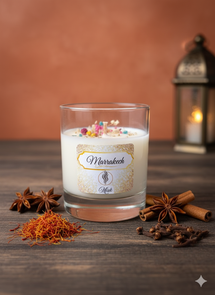 Marrakech est une invitation au voyage, une senteur chaude et épicée inspirée des ruelles vibrantes et colorées de la médina. Notes boisées, épices orientales et touches d’ambre s’entrelacent dans une composition intense et envoûtante. Elle évoque les marchés aux épices, les étoffes précieuses et la chaleur dorée d’un coucher de soleil sur les toits de la ville rouge. Une ambiance chaleureuse, mystérieuse et profondément sensorielle.